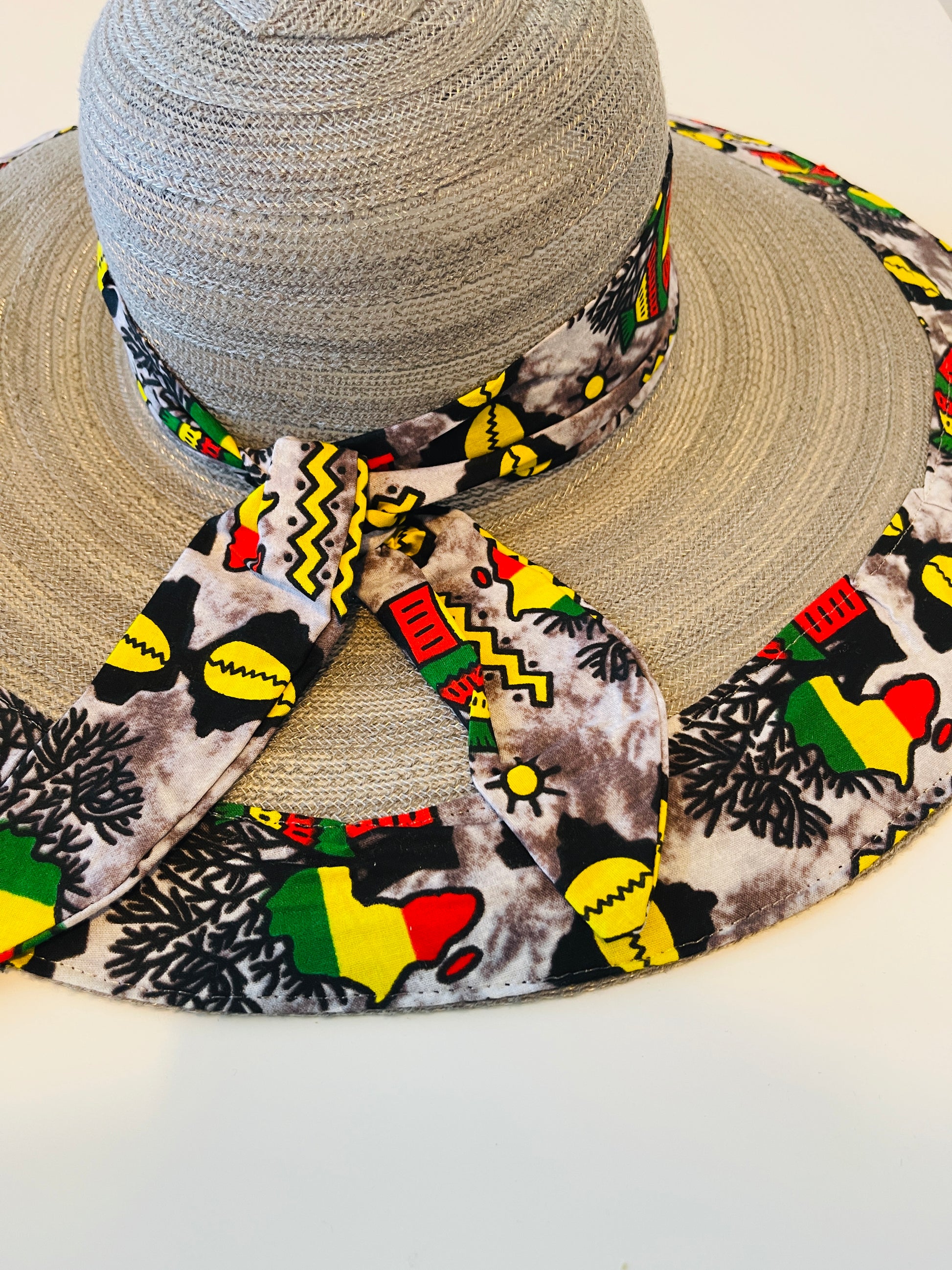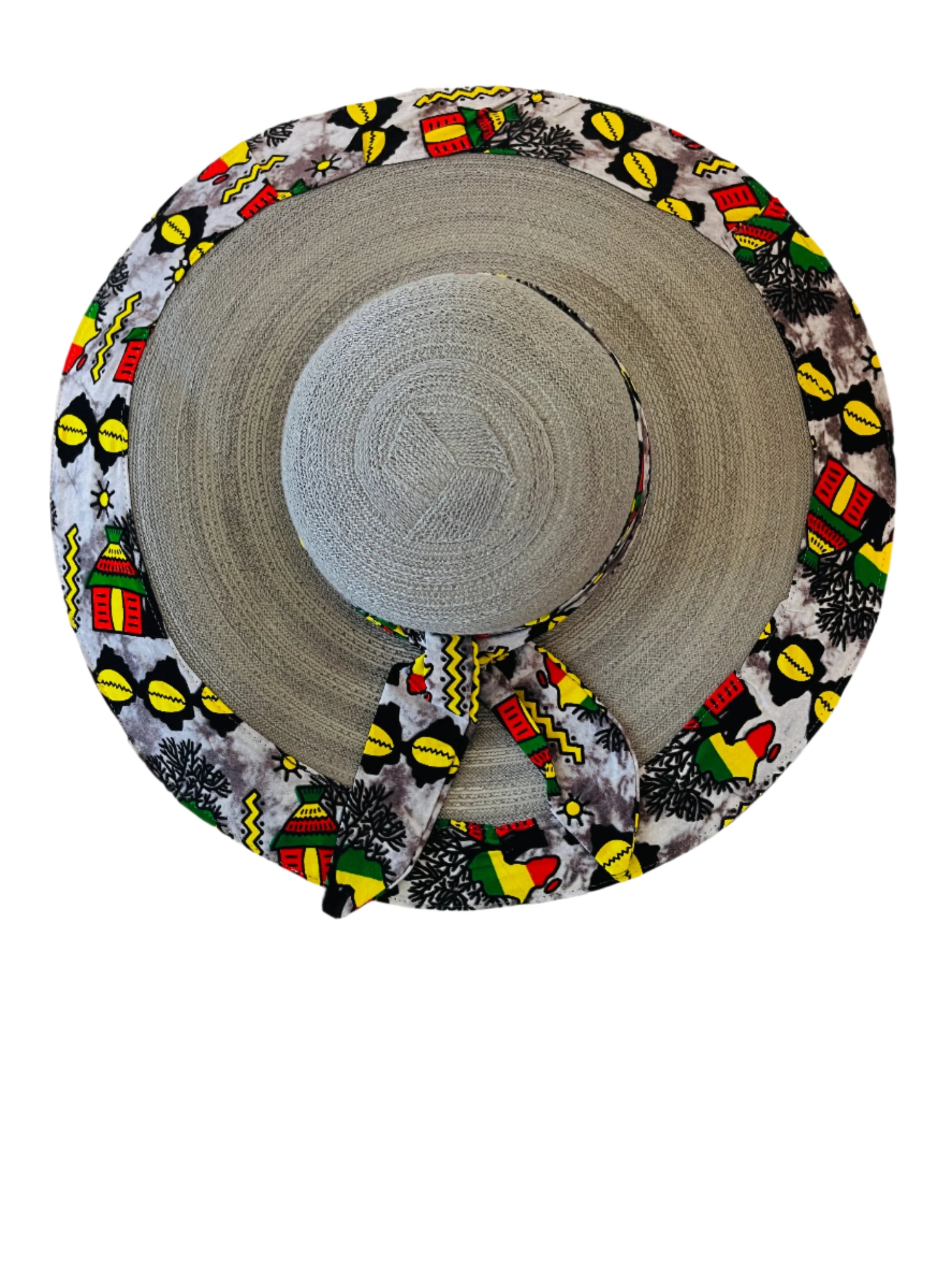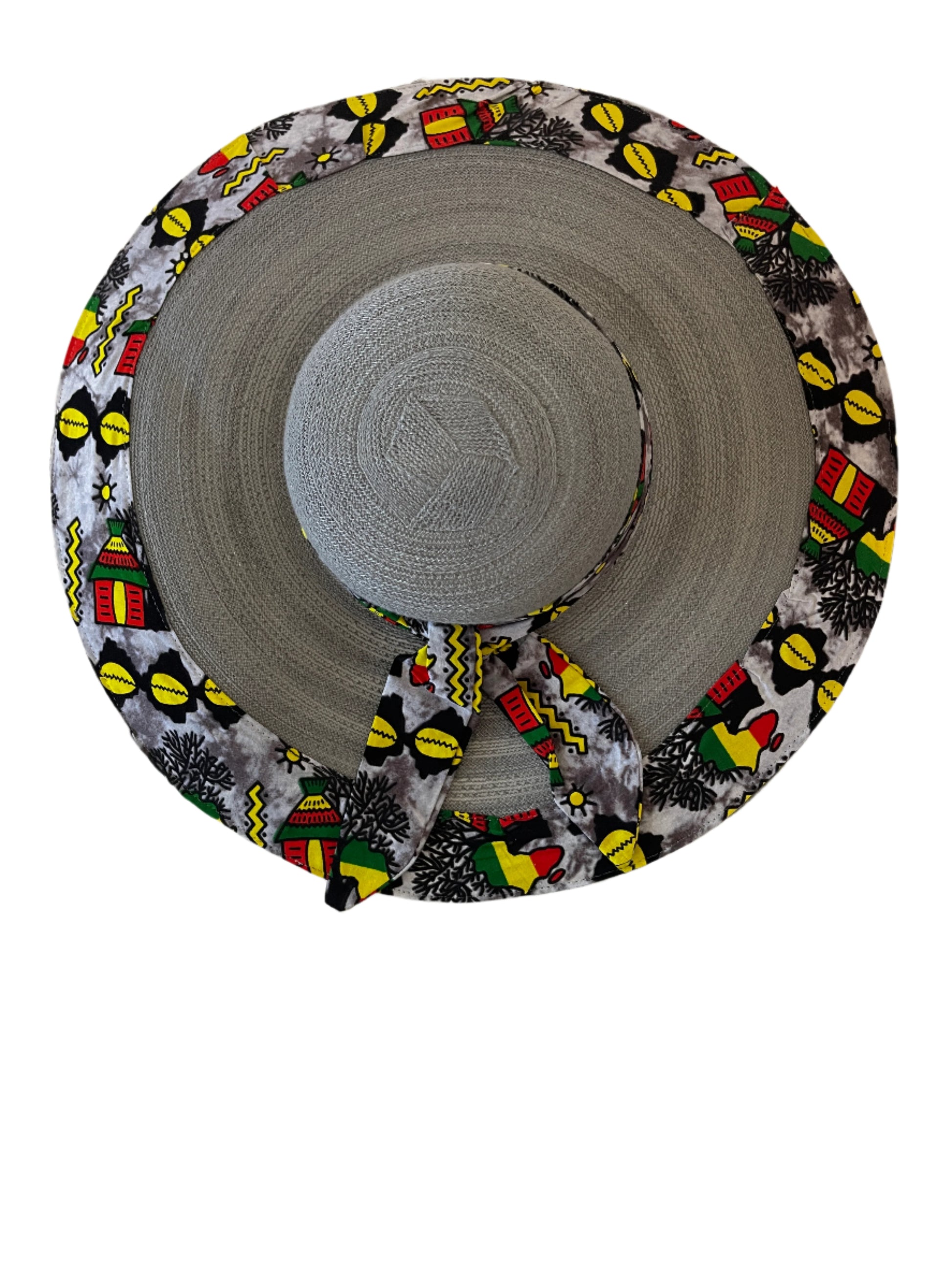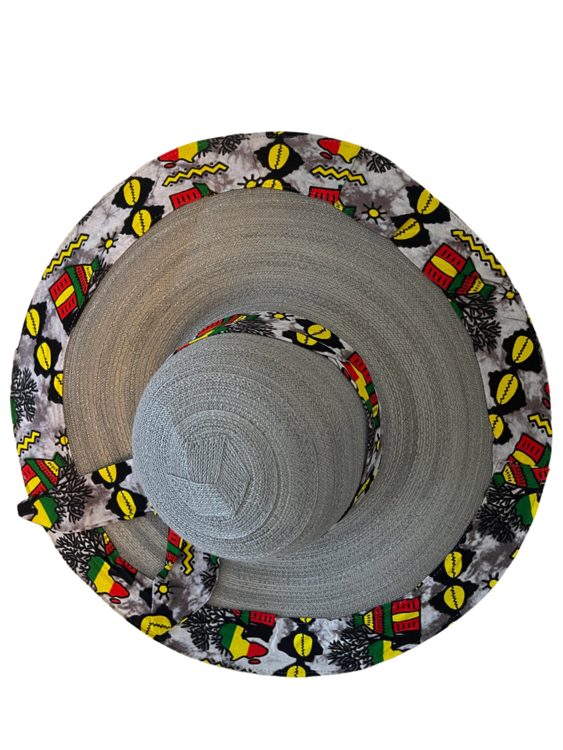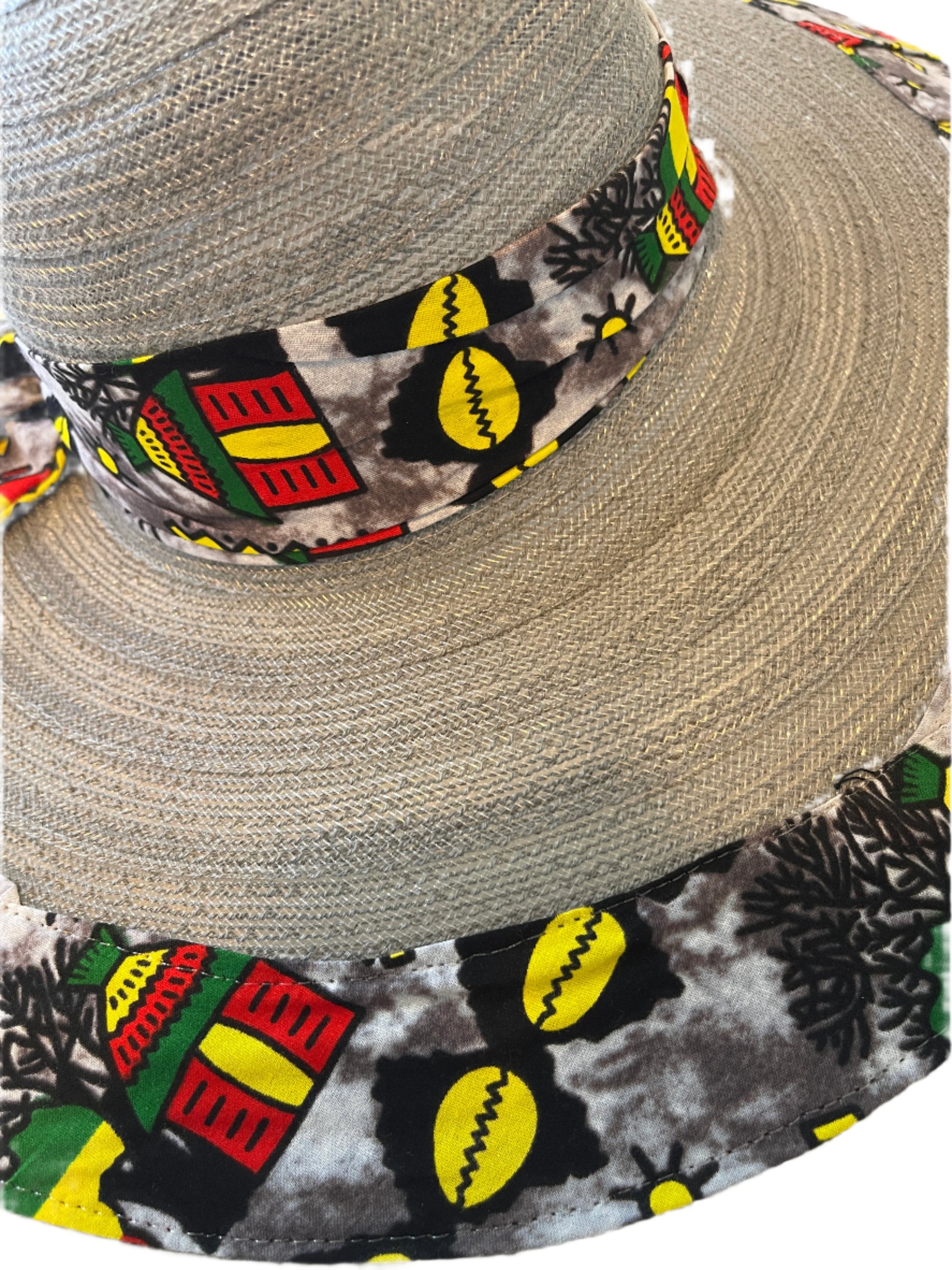 This is a one size fits many, lightweight, durable and uniquely sewn hat made from high quality African Ankara print and straw.