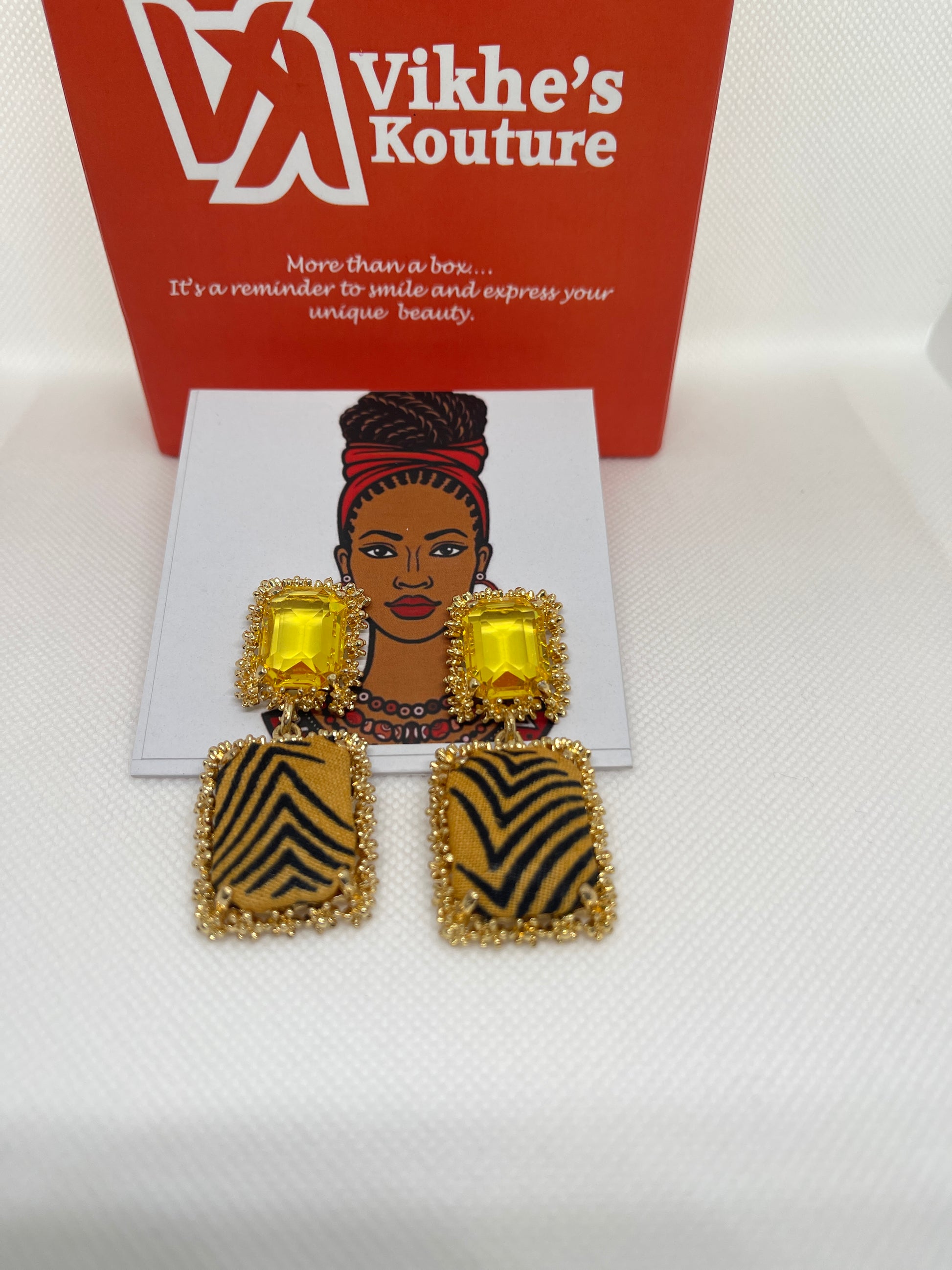 Stunning Ankara earrings, where traditional African wax print fabric meets modern elegance. Designed for the bold and sophisticated, these earrings feature vibrant Ankara fabric beautifully complemented by gold or silver edges, adding a sleek, contemporary finish.
